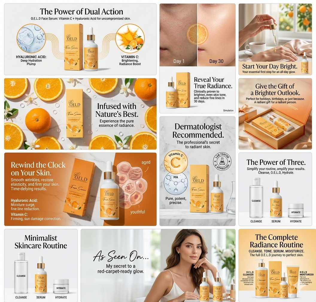 The O.E.L.D Vitamin C Face Serum is a brightening and hydrating skincare formula designed to improve skin tone, reduce dullness, and enhance overall radiance. Infused with Hyaluronic Acid, it deeply moisturizes the skin while Vitamin C helps fade dark spots, boost glow, and support collagen production.